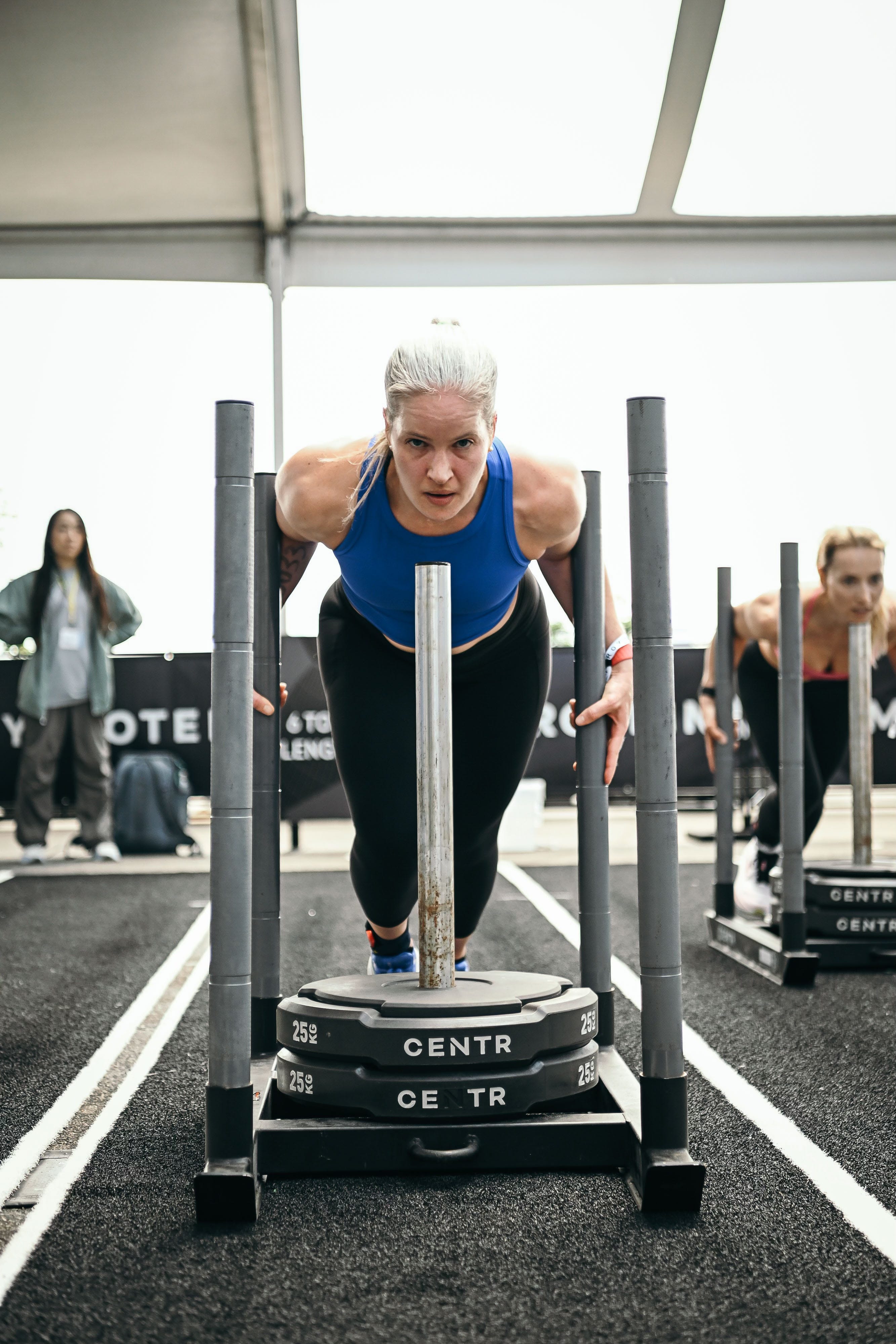 HYROX includes eight functional workouts, each paired with a 1 kilometer run. Two of these workouts — the sled push and pull — intimidated me. I had never used a sled the weights seemed really heavy (225 and 172 pounds, respectively).